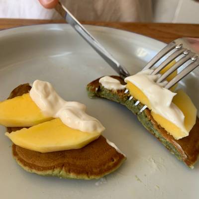 All topped off with a honey and tamarind glaze. I made two pandan cakes this week. These are pancakes in the sense that they're cooked on a stovetop and are lovely drenched with syrup, but they are definitely not a replacement for your favorite. Pandan is basically a plant that's extensively used as flavouring in the south and we used pandan extract to make the pancakes, and the coconut milk to make the custard. Also ordered the banana pancakes and we were not disappointed.